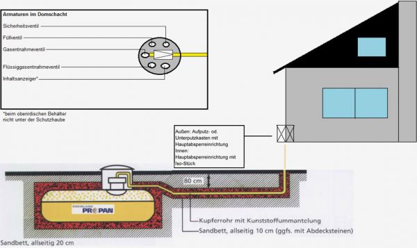 Die Einlagerung eines unterirdischen Behälters ist mit größerer Sorgfalt (wegen Beschädigung der Epoxidharzbeschichtung) vorzunehmen als die Auftstellung eines oberirdischen Behälters. Beim unterirdischen Behälter hängt die Betriebszulassung von der Behälterart ab. Während Behälter ohne 1-Mann-Einstiegsloch nach der Erstinbetriebnahme nur eine begrenzte Zulassung von maximal 30 Jahren haben, sind Behälter mit 1-Mann-Einstiegsloch bei ordnungsgemäßer Wartung in der Regel von unbegrenzter Lebensdauer.